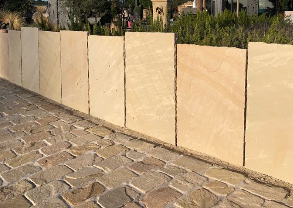 Utilisation : en pas japonais, pour la réalisation de cheminements, la création de bacs, murets, marches ou à la verticale pour l’installation en paravent et claustra, ces dalles de grès apportent du rythme et de l’originalité à votre jardin.